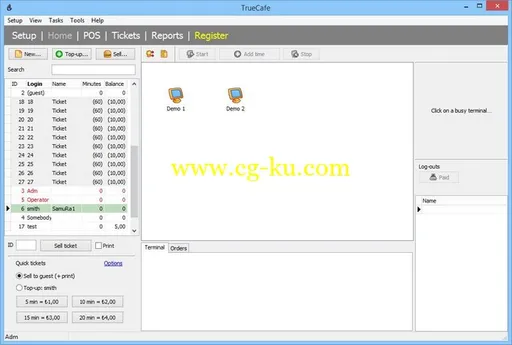 - Terminal Client Lock your cyber cafe terminals. Protect it from logging in via Ctrl-Alt-Del, etc. Display a customer session time/money left after login. Let your customer order snacks, drinks, etc. from their seats.